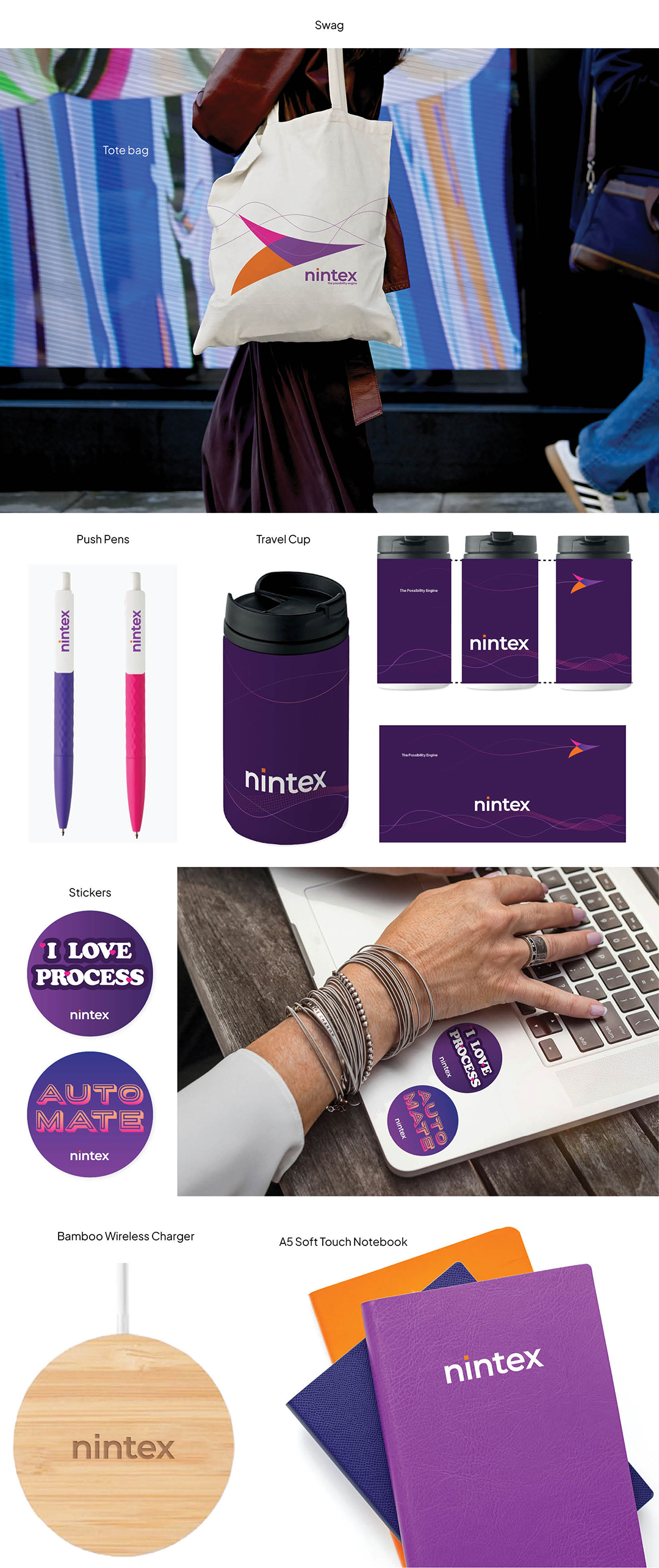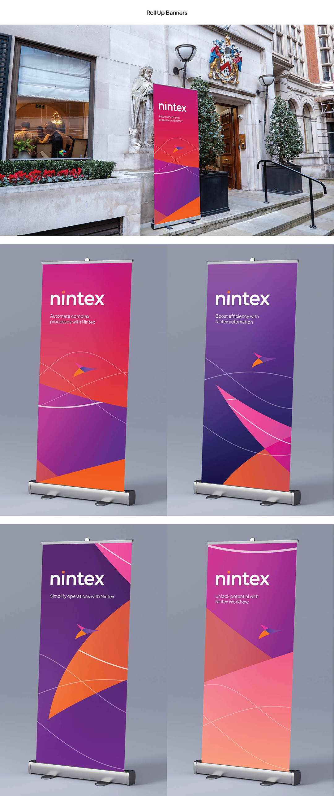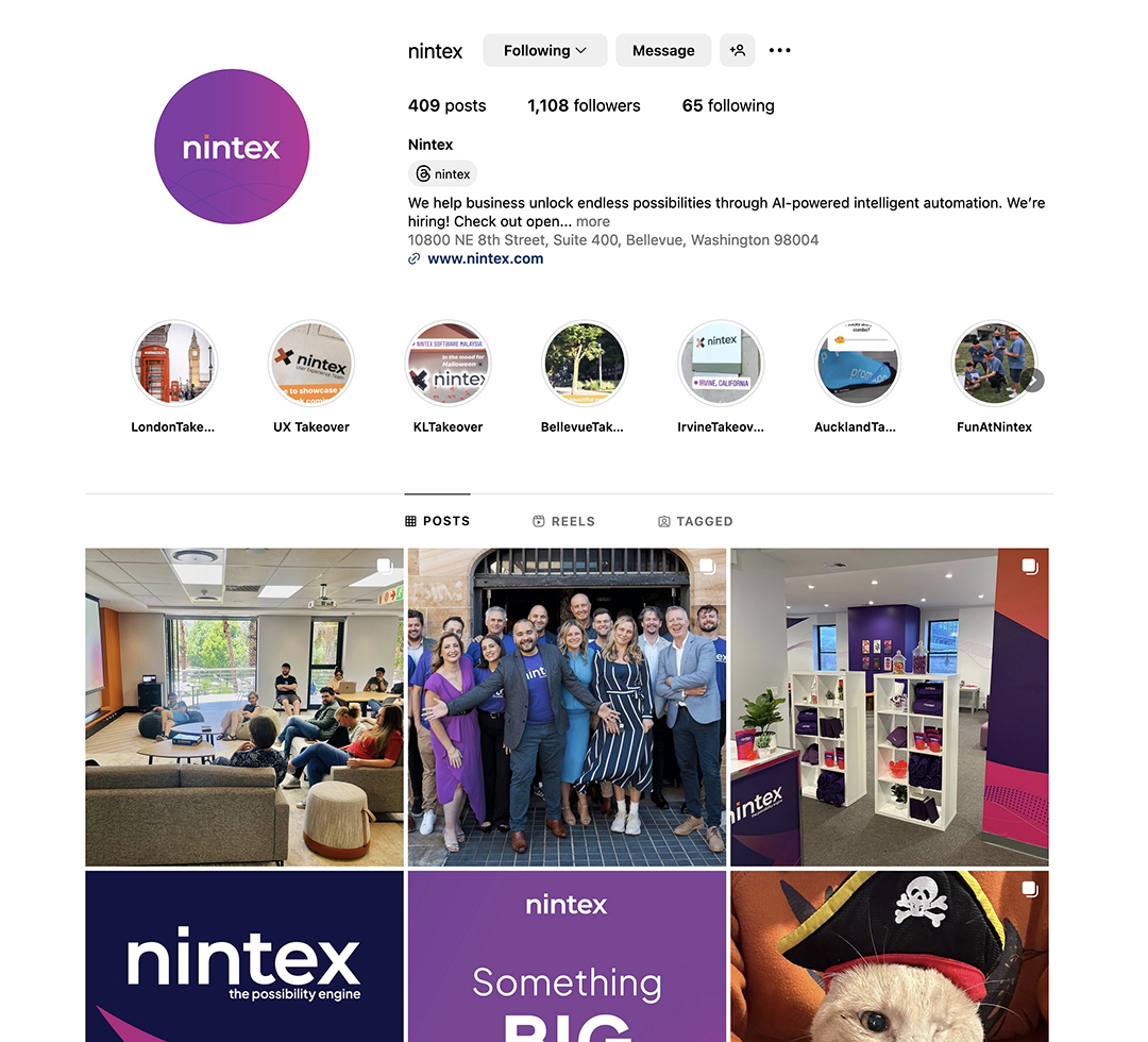 Nintex is a process automation platform with offices worldwide, working with 8,000 organisations across 90 countries. In 2024, Nintex completed a rebrand and Genie designed new office stationery, social media graphics, marketing collateral, eBooks, event graphics, signage and swag to meet their new brand guidelines.
