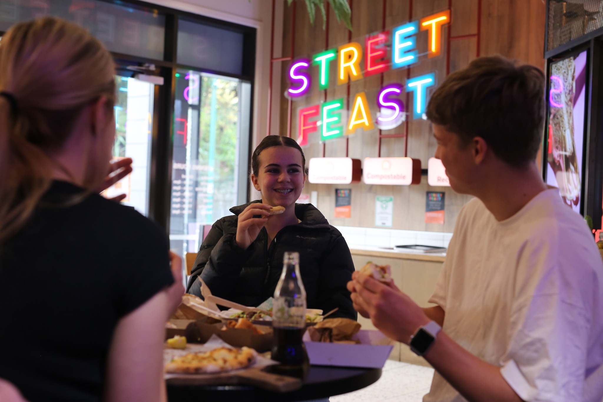 Monster created a vibrant, festive brand to represent the diverse vendors operating under the brand Street Feast. The logo was transformed into various indoor and outdoor signage and looks particularly striking translated into LED signage.